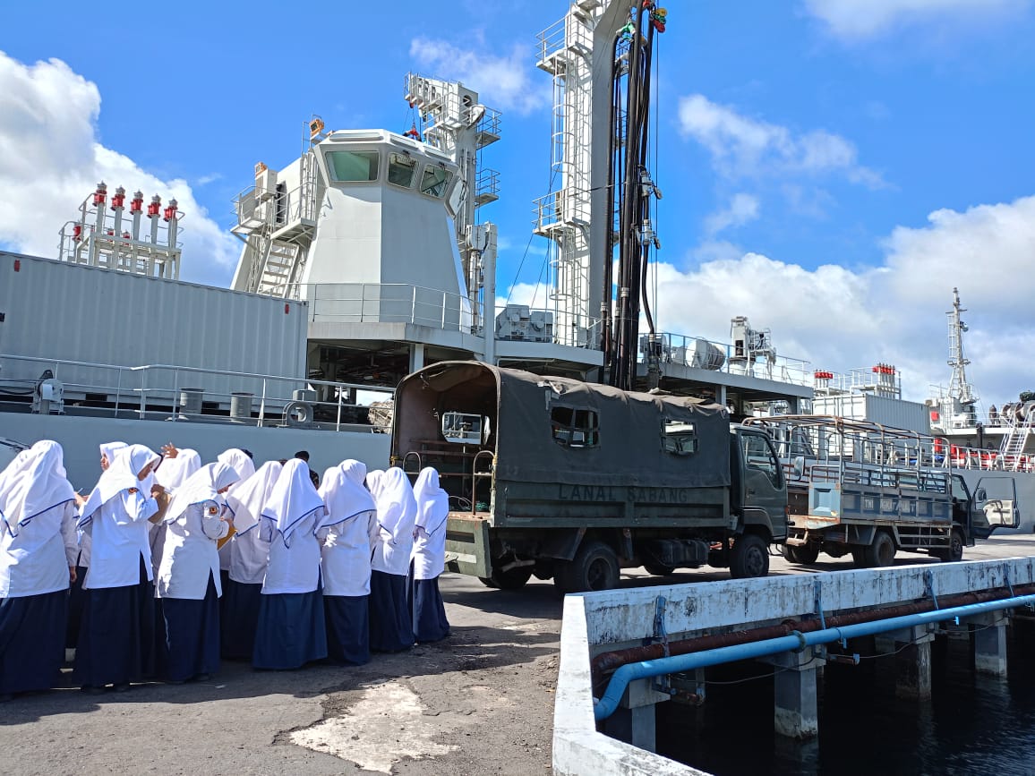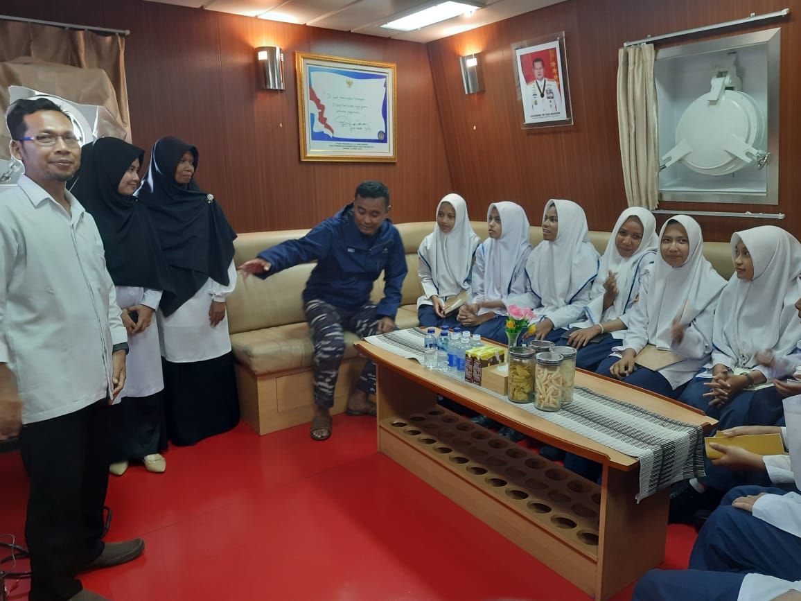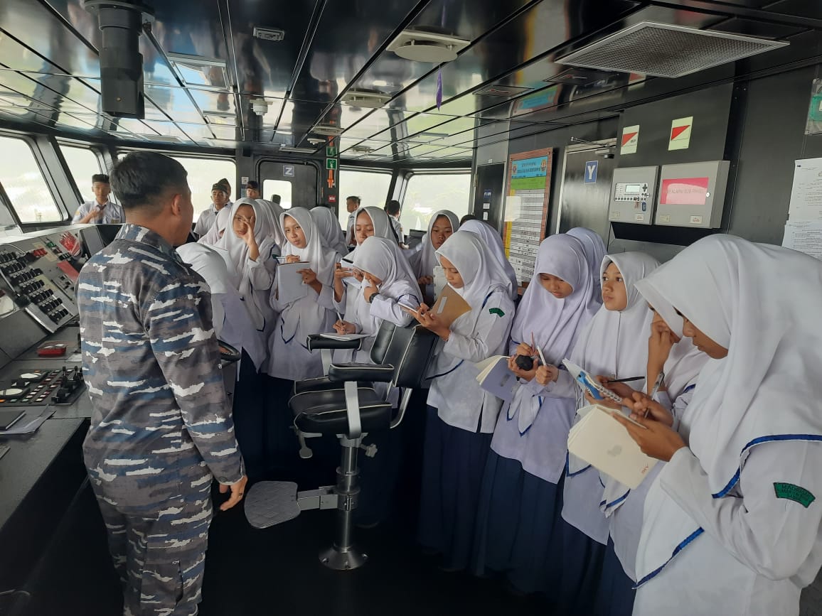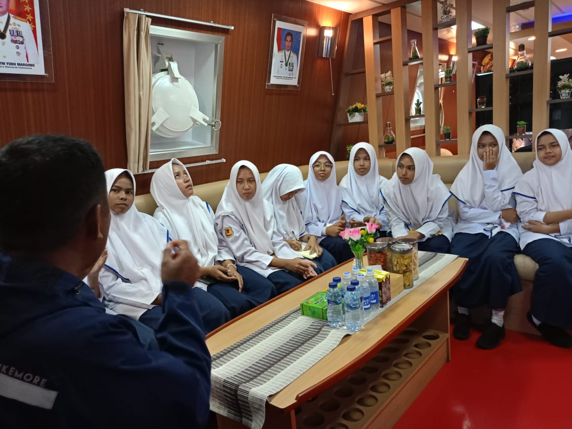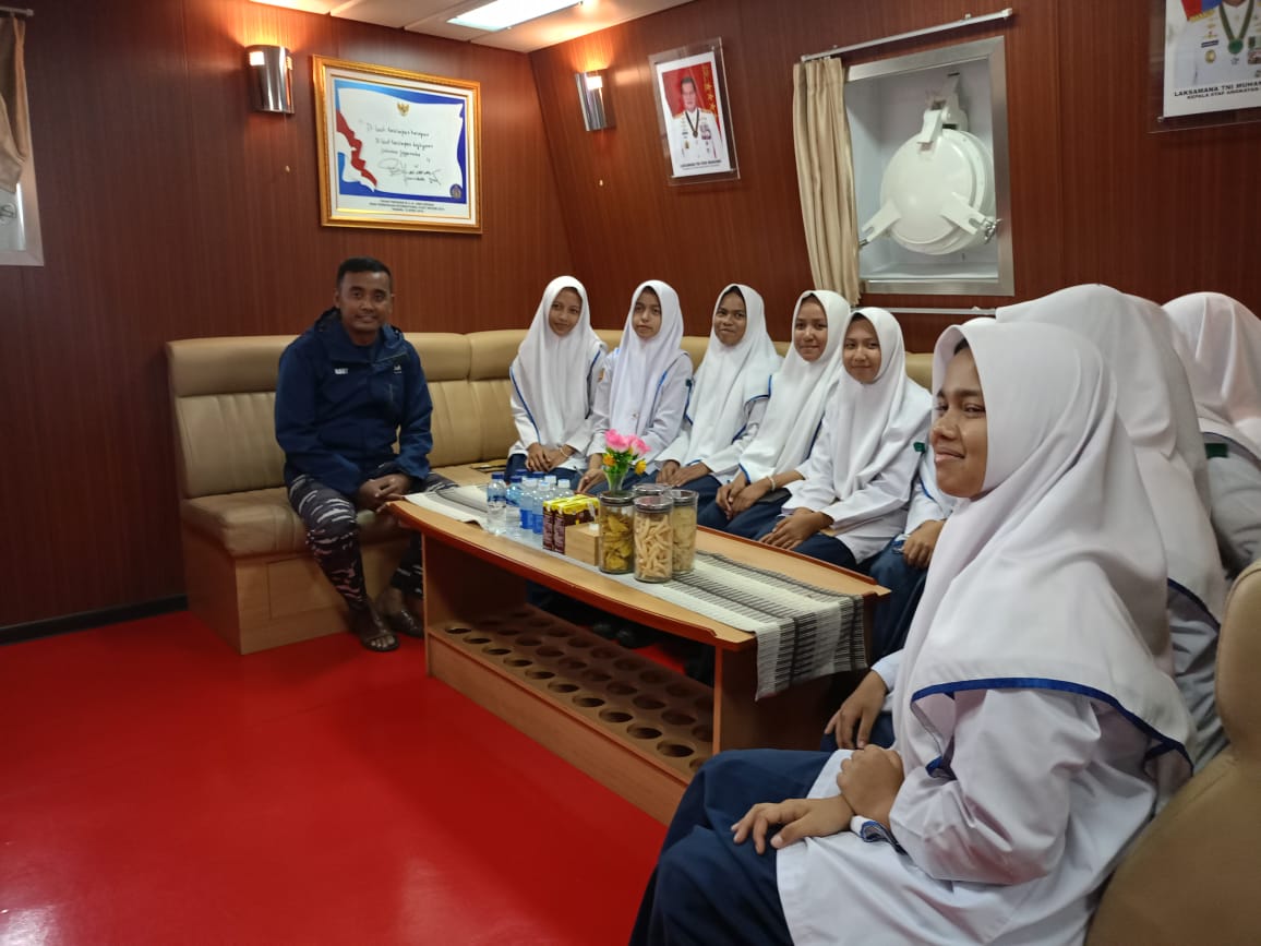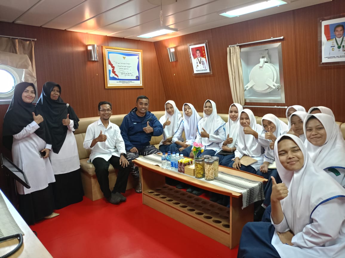 (Latifa Sahara) Selasa, 29 Agustus 2023 siswa siswi MTsN Sabang mengunjungi kapal perang KRI bontang 907 yang tengah bersandar di Sabang.