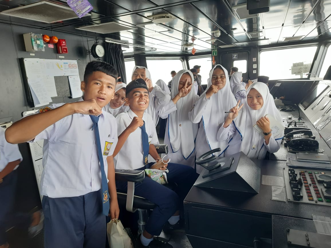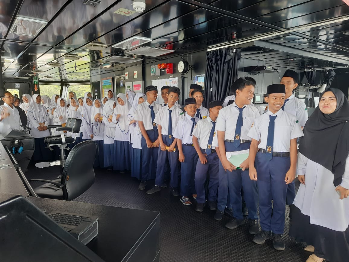Sebelum pulang, para siswa/i diajak untuk bertemu dan melihat ruangan komandan kapal. Tampak wajah siswa/i antusias mendengarkan penjelasan dari komandan kapal KRI Bontang 907. "Besok kami akan bertolak kembali menjaga batas-batas perairan Indonesia, mohon doanya", ungkap Komandan.
